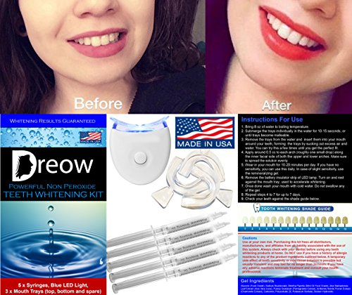 That led me onto a mission to develop the perfect teeth whitening kit with durable teeth whitening trays; one which would be powerful enough to remove years worth of stubborn stains yet kind and gentle to the gums. So - there emerged the DREOW kit. With all the features of teeth whitening systems used by dentists throughout the USA and Europe - the DREOW kit can be used at home to do the same job, for a fraction of the cost.