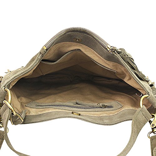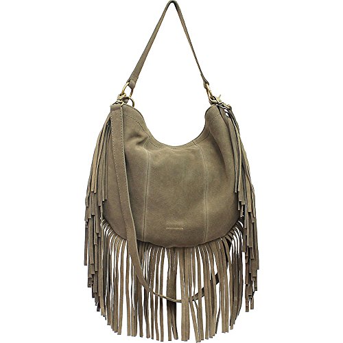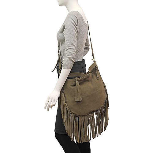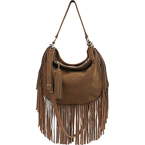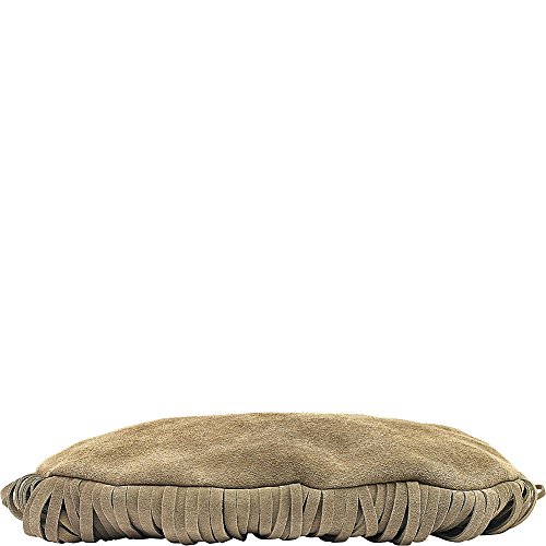 The rickey suede crossbody hobo is constructed in suede and features fringe detail along the sides.