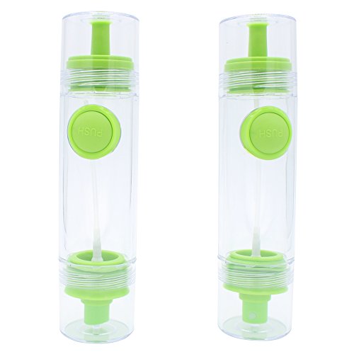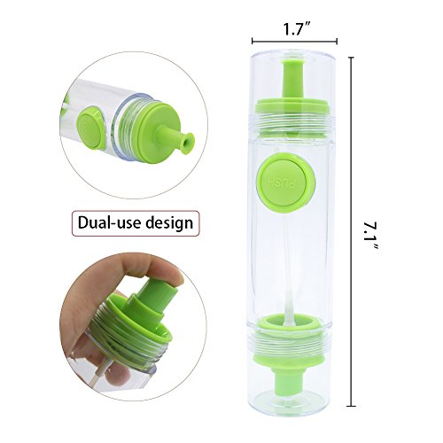 Studio : YOPINDO Publisher : YOPINDO Product Description ♥ MULTI-PURPOSE USE - Oil Mister Sprayer Fill this sprayer with your favorite oils, vinegars, lemon and lime juice, sherry, or marsala wine. It is great for salads, breads, baking or cooking. ♥ EASY TO USE - Simple pumping action that produces a fine mist, more uniform in spraying and control the amount of oil per time used in cooking. The other is oil dispenser pouring port with a press button ( push the button when pouring oil, 1 push will give out several drops.) ♥ safe on any surface - perfect for patio, boat, or RV food preparation. ♥ Refill and Re-use with ALL your favorite oils - such a Fine Mist no more wasted oil down your drain! ♥ NO DRIP POURING - Oil and vinegar dispenser features dripless pour spout to mix liquid ingredients without making a mess ♥ bottle glass to see the capacity and dosage, easy to clean ♥ Perfect for Marinating or garnish your meat/fish/vegetables with oil, sauce, vinegar or honey. It will not stick when you sauteing your food, making cupcake, muffin or backing bread. ♥ Easy to clean: Detachable for easy cleaning, health and hygiene ♥ Dustproof with the transparent cap. ♥ Unavailable in the dishwasher dryer. ♥ Lightweight, you can carry everywhere, such as kitchen, travel, camping, barbecue etc. ♥ Size:3.35"*1.78"*1.78" ♥ Weight:125g Package Included: 2 × Oil Sprayer Dispenser Note: Please allow a little color and dimension errors due to lighting effects, monitor's brightness/contrast settings and manual measurement etc. 0