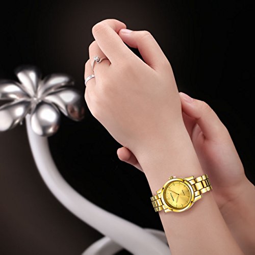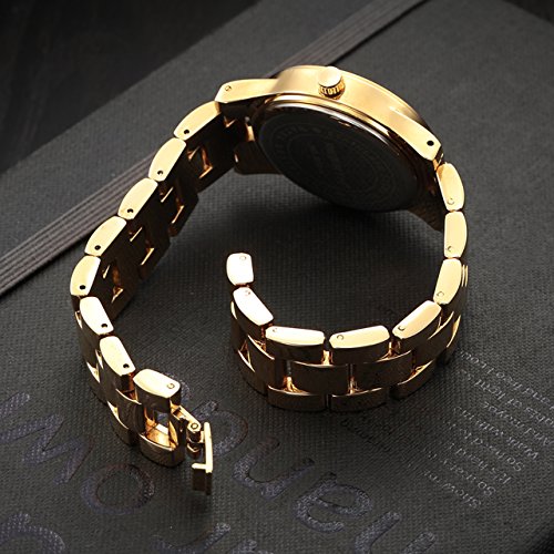 Top Plaza Women Classic Luxury Bracelet Watch Arabic Numeral Gold/Rose Gold/Silver Tone Case Solid Alloy Strap Jewelry Hidden Buckle Analog Quartz Watch 3ATM Waterproof