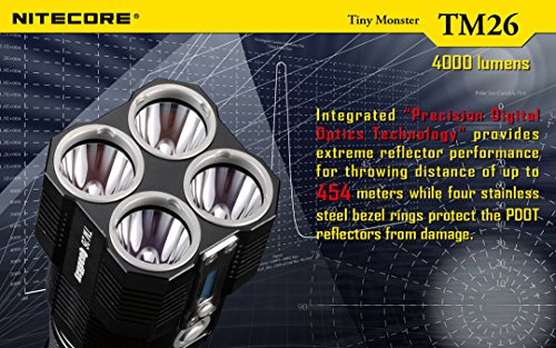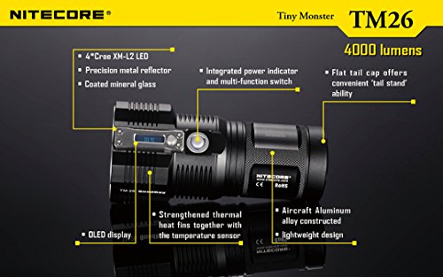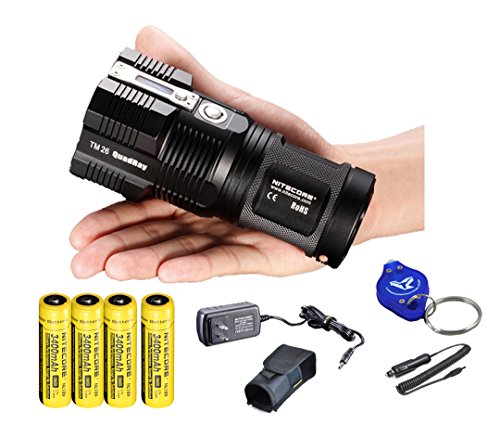 • Bundle include: TM26, 4 x Nitecore NL189 3400mAh 18650 Batteries, A/C Charger, Car Charger, Lumen Tactical Keychain Light