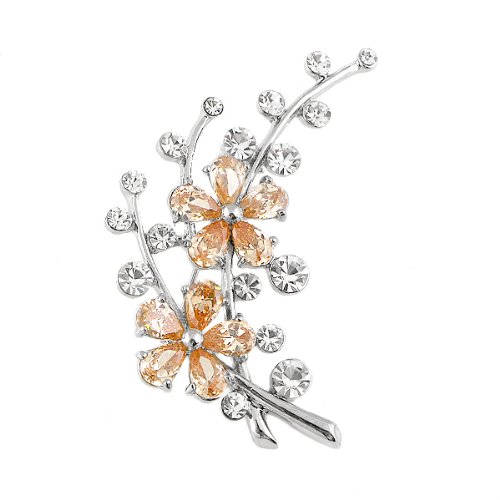 -. Title : Glamorousky Dazzling Flower Brooch with Silver Swarovski Element Crystal and Orange CZ (3311)