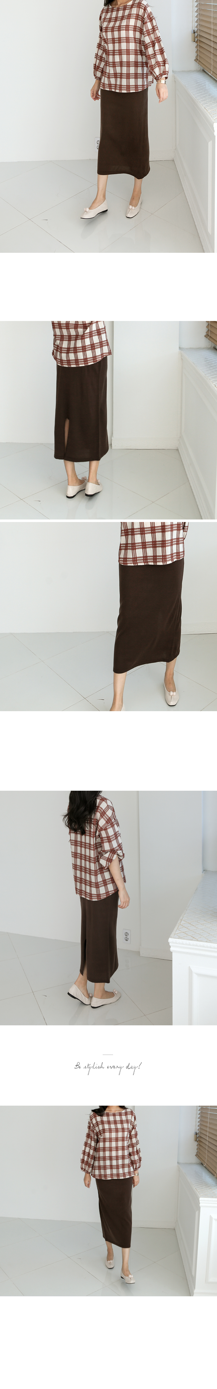 롱 길이의 완성도 높은 간절기 니트 스커트로