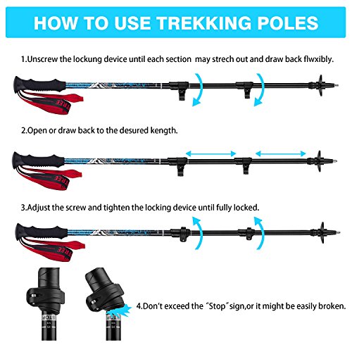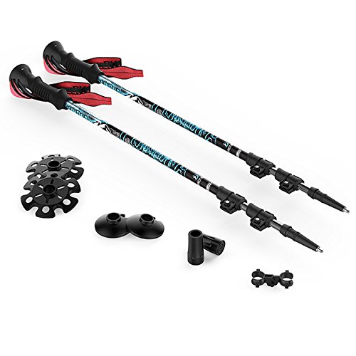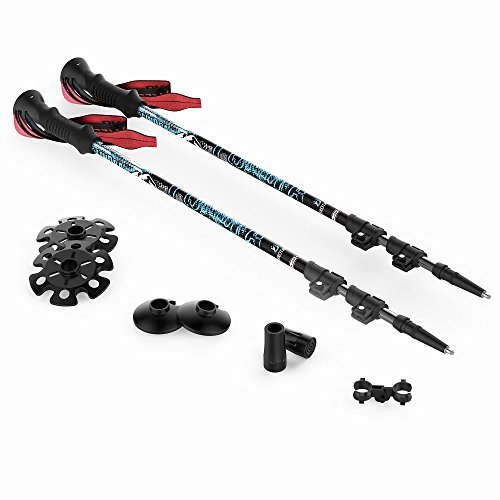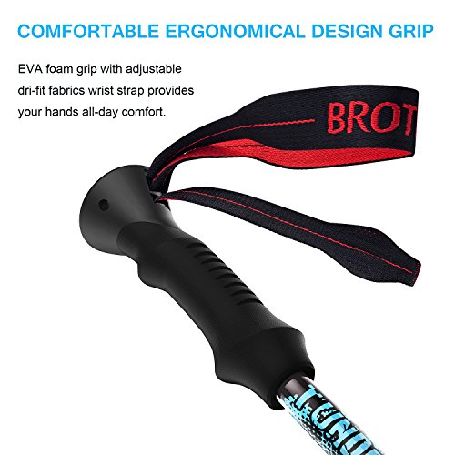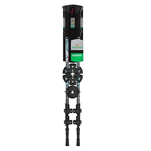 Brotree Dual Quick Flick-lock Trekking Poles ? Ultralight, Strong and Anti-Shock - Made of aircraft grade aluminum alloy material, extremely light (Only 9.5 oz), durable and not easy to deform. ? Compact and Easy to Carry - They fold up to a really manageable size 25' and can be clipped onto my backpack without being in the way. ? Comfortable Ergonomics Design Grip - EVA foam grip with wrist strap provides all-day comfort, non-slip and sweat-absorbent, fits your hand perfectly. ? Double Quick Flip-Lock Mechanisms - Easy to adjust the pole by the bolts from 25"(63 cm) to 53"(135 cm) quickly to get your preferred height. ? Nice Graphics on The Shaft - Represents the youth and vitality. ? Offer Better Balance during more challenging and rugged backcountry travel and reduce stress on your body during both the descent as well as the ascent. ? Perfect for trekking, hiking, walking, climbing, backpacking, mountaineering, snowshoeing and all outdoor activities. ? Suitable for men and women Specifications: Material: aircraft aluminum alloy Net weight: 9.5 ounces/single Collapsed size: 25 inches (63 cm) Extended size: 53 inches (135 cm) What's included: ? 2 x Trekking poles ? 2 x Rubber tips protectors ? 2 x Mud baskets ? 2 x Snow baskets ? 1 x Connector Worry-free Warranty: One year product guarantee from Brotree, 60 days money back. 0 |