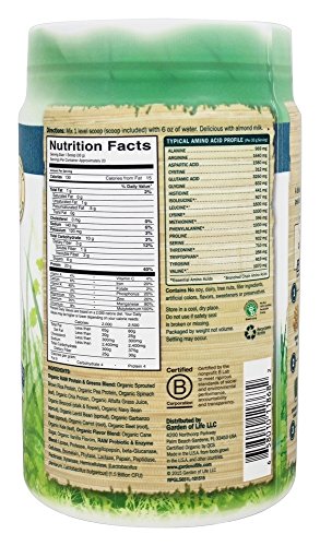 ReleaseDate : 2016-01-14 Studio : Garden of Life Publisher : Garden of Life Binding : Health and Beauty Product Description RAW Protein greens Lightly Sweet is a Certified USDA Organic and Non-GMO Project Verified blend of clean, organic plant protein providing 20 grams of delicious, smooth protein derived from organic pea, organic sprouted brown rice, organic chia, organic navy bean, organic lentil bean and organic garbanzo bean. It’s uniquely blended with six nutrient-rich, energizing, organic greens including organic alfalfa grass juice, organic spinach, organic kale, organic broccoli, organic carrot and organic beets. Flavored with delicious organic flavors, it is sweetened with 6 grams of organic cane sugar. 0