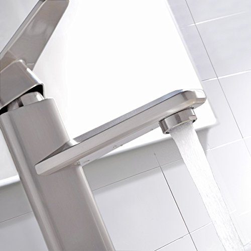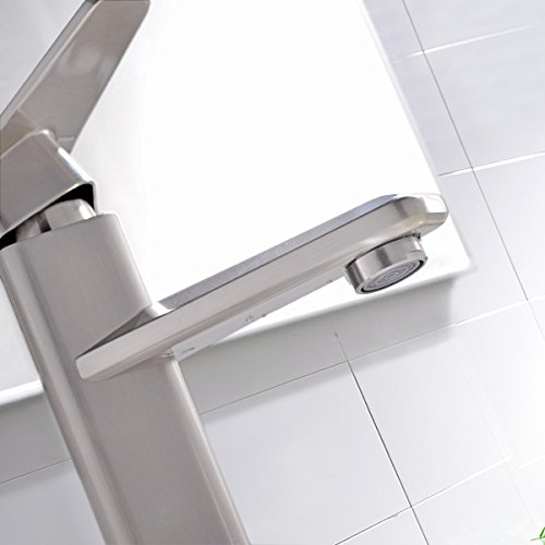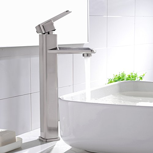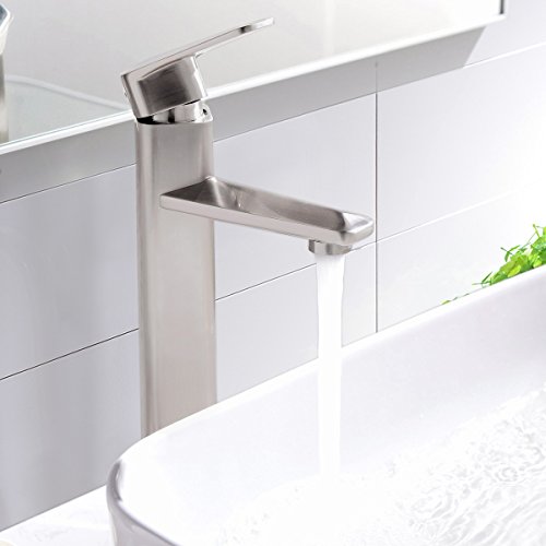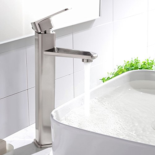Comllen Modern Commercial Stainless Steel Single Hole Tall Vessel Sink Bathroom Faucet, Brushed Nickel