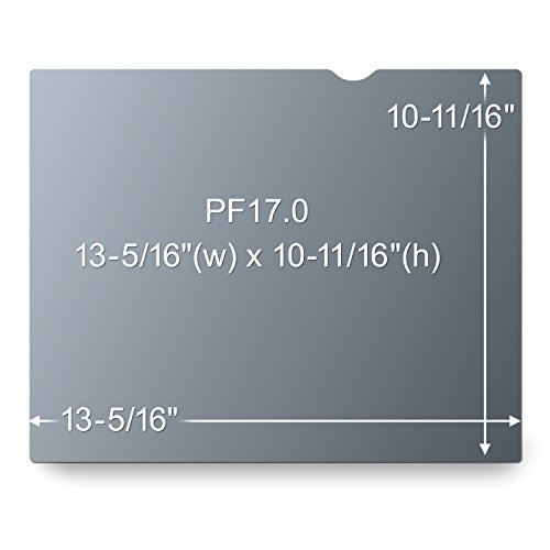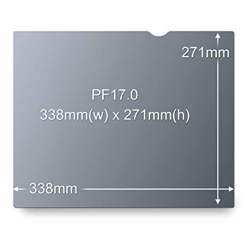 - Feature : Keeps your personal or confidential information safe from prying eyes / You'll see the information on your display while people on either side only see a darkened screen / Designed to fit standard desktop LCD monitors with a diagonally measured 17 1/16" viewing screen and a 5:4 aspect ratio / Actual filter dimensions are 13 5/16" wide x 10 11/16" high (338 mm x 271 mm) / Includes your choice of two easy-to-use attachment methods / Reversible, matte side reduces glare and reflections / Lightweight, thin, frameless design / Protects display from dirt, debris and scratches / Cleans easily with a soft cloth and water / Great for high traffic areas and open office environments / Limited 1-year warranty / Fits screen sizes of 17" diagonaly measured (Width 13 3/8",Height 10 5/8") / Protects on screen data when viewed from the side keeping your electronic information confidential making it excellent for use in high traffic areas. / Provides 1.5 times more effective privacy than competitive models. / Helps protect your fragile LCD screen from damage / Filter is reversible;Choose glossy or matte side