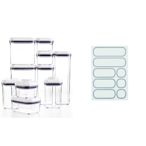 OXO Good Grips 10-Piece POP Container Set, White and OXO Good Grips Removable Labels for POP Containers Bundle