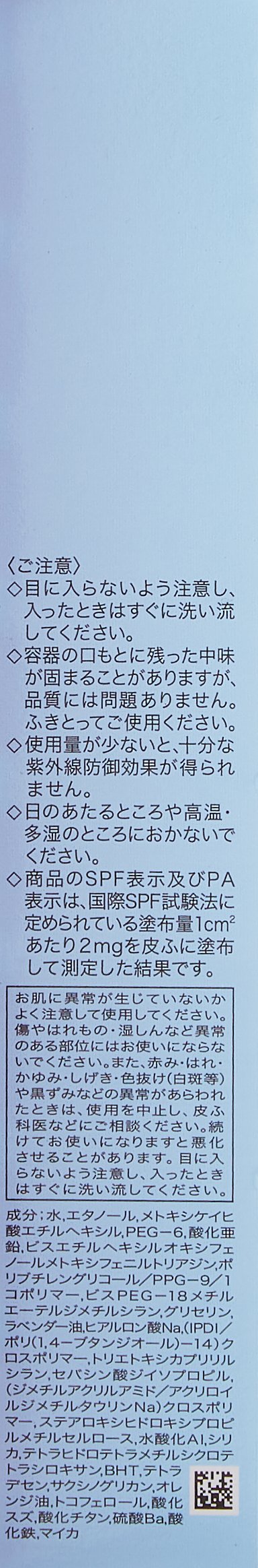 ※ The SPF display and PA display of the product is the result of measuring 2 mg / cc / m 2 of coated amount as specified in the International SPF Test Method.