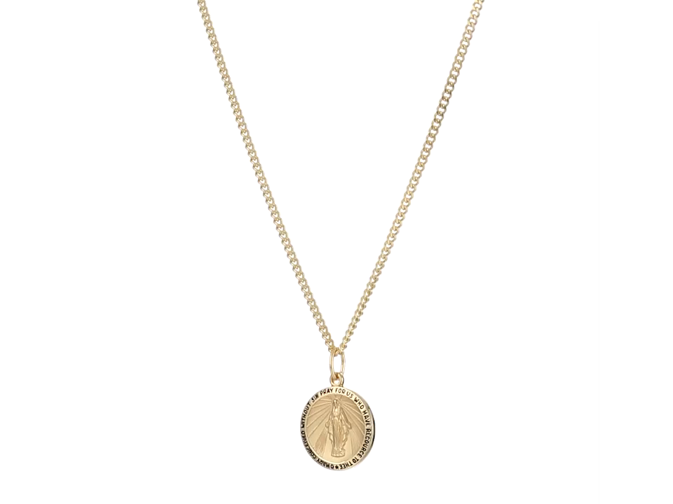 14k Gold-Filled Round Miraculous Medal Madonna Pendant Necklace with Stainless Steel Chain, 20"