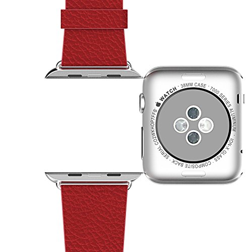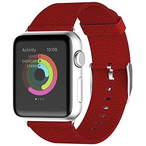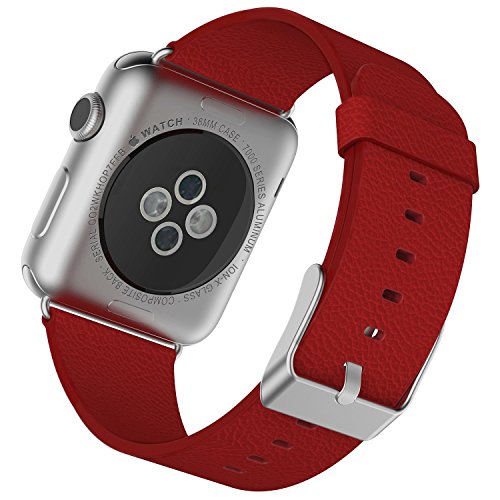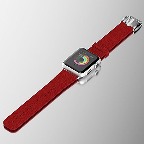 Apple Watch Band, JETech 38mm Buffalo Leather Strap Wrist Band Replacement w/ Metal Clasp for Apple Watch All Models 38mm (Red)