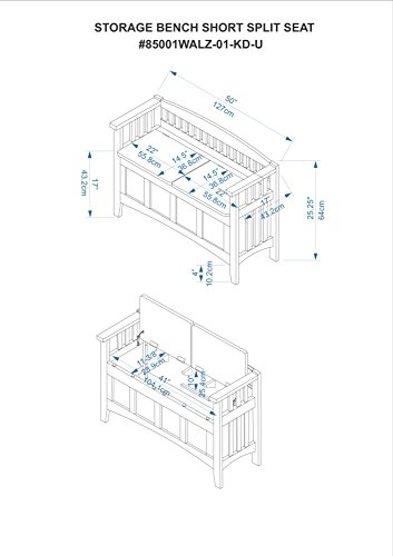 -. Feature : Dimensions: 50L x 17W x 25.25H in. / Interior Storage: 44.5L x 15W x 10.5H in. / Crafted from sturdy rubberwood / Available in 4 finishes / Split-side storage for convenience