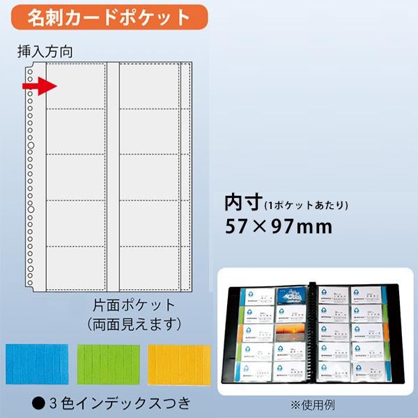 名刺サイズが600枚収納できます。収納に便利なインデックス付き。