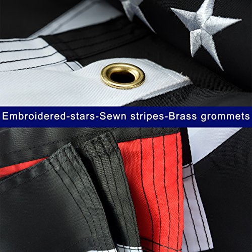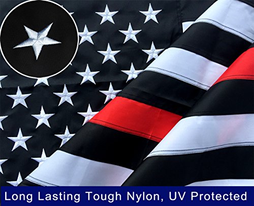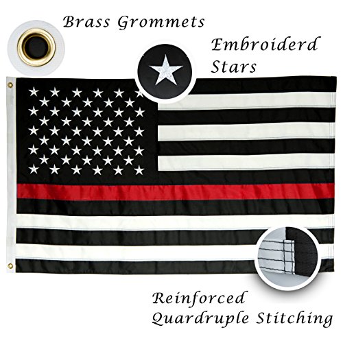 US Thin Red Line Flag 3x5 Firefighter Flags - Embroidered Stars and Sewn Stripes with Grommets Black Red and White US Flag