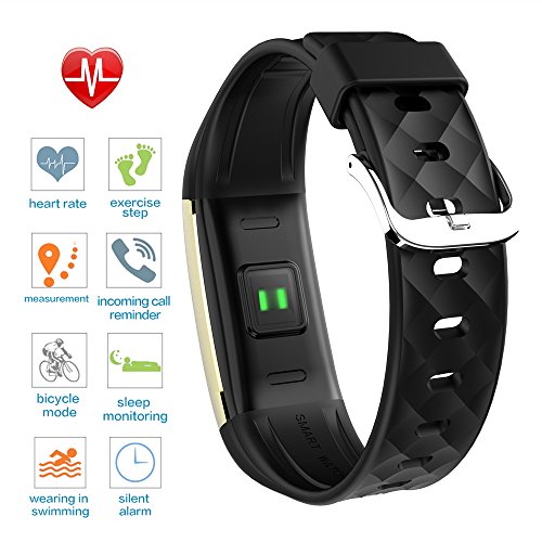 Fitness Tracker Heart Rate Monitor Activity Health Tracker Waterproof Smart Wristband Band with Pedometer Sleep Monitor Step Calorie Counter Bluetooth Bracelet for iPhone Android (Gold/Black)