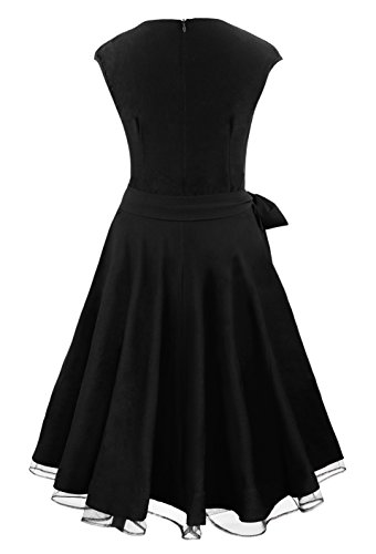 KILLREAL Women's Elegant Sleeveless Vintage 50s Style V-Neck Cocktail Party Swing Dress Black Large