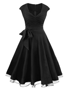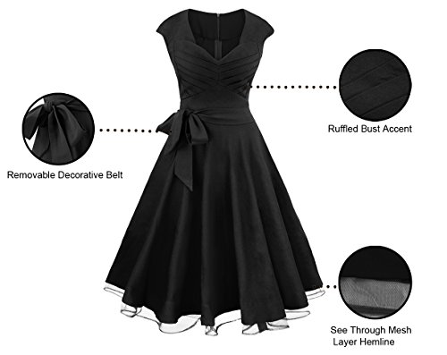 KILLREAL Women's Elegant Sleeveless Vintage 50s Style V-Neck Cocktail Party Swing Dress Black Small