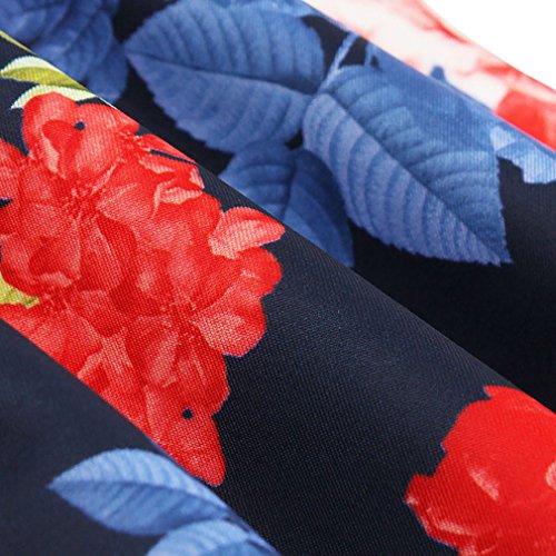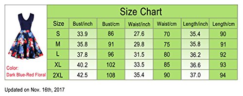 KILLREAL Women's Vintage Rose Floral Print V Neck Sleeveless Cocktail Swing Dresses Dark Blue Red Large