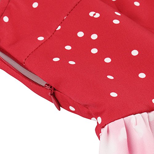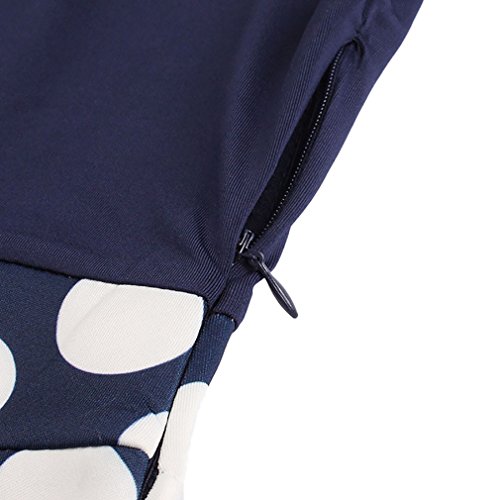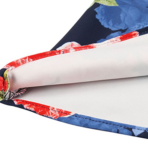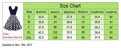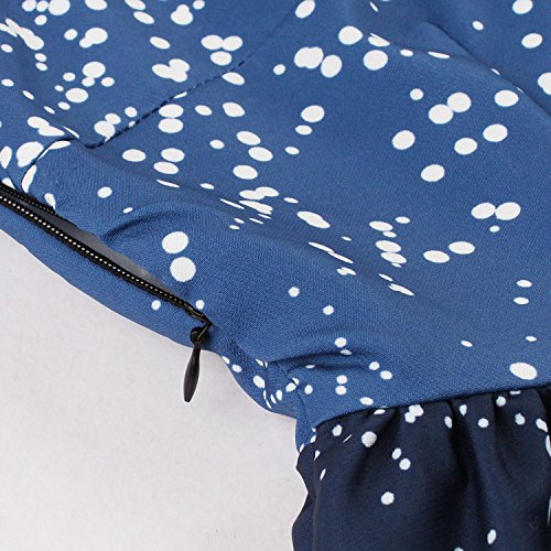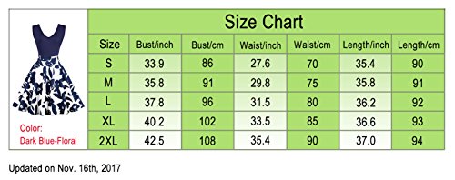 KILLREAL Women's Vintage Floral Print V Neck Sleeveless Polka Dot Cocktail Swing Dresses Dark Blue Large