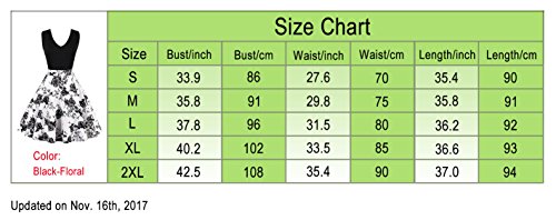 KILLREAL Women's Vintage Floral Print V Neck Sleeveless Cocktail Swing Dresses Black Large