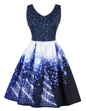 KILLREAL Women's Sleeveless Christmas Tree Pattern Party Dance Summer Casual Holiday Dress Blue XXX-Large