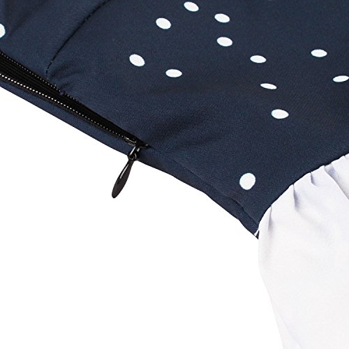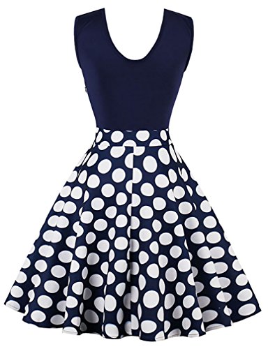 KILLREAL Women's Vintage Floral Print V Neck Sleeveless Polka Dot Cocktail Swing Dresses Dark Blue Medium