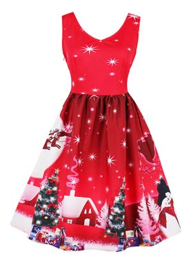 KILLREAL Women's V Neck Sleeveless Christmas Tree Printed Flared Cocktail Party Dress Red XXXX-Large