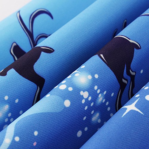 KILLREAL Women's Santa Claus and Reindeer Pattern Cocktail Party Christmas Dress Blue Medium