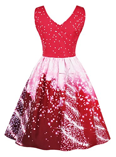 KILLREAL Women's V Neck Sleeveless Christmas Tree Printed Flared Cocktail Party Dress Red X-Large