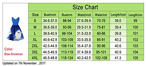 KILLREAL Women's Sleeveless Snowman Printed Knee Length Flared Dress for Christmas Party Blue XXXX-Large