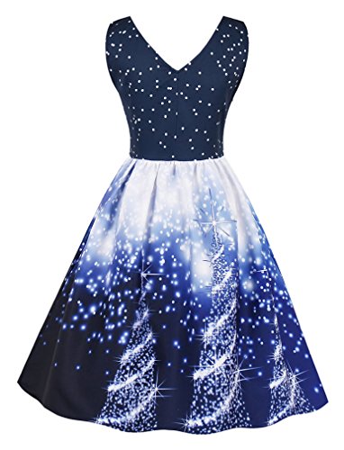 KILLREAL Women's Sleeveless Christmas Tree Pattern Party Dance Summer Casual Holiday Dress Blue Medium