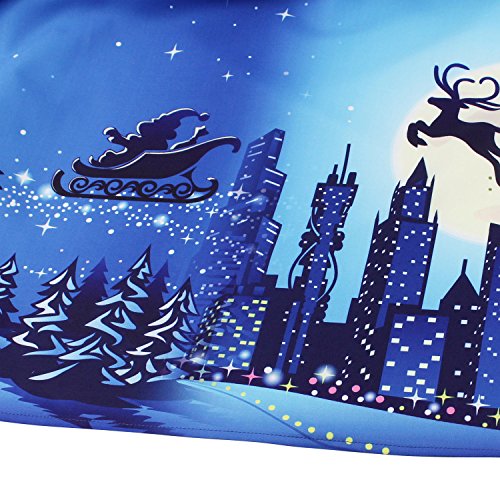 KILLREAL Women's Santa Claus and Reindeer Pattern Cocktail Party Christmas Dress Blue Large