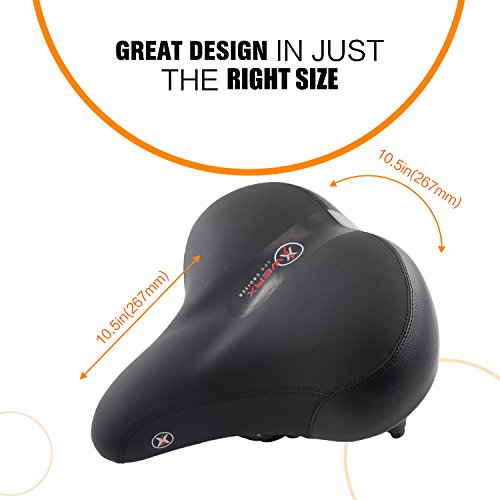 Xwerx saddles offer unmatched comfort and quality! Get a premium bike saddle at almost half of what anyone else is selling them for! This ultra comfortable saddle is especially designed so you will ride longer without worrying about the next day soreness! Size: 10.5in. long x 10.5in. wide (L267xW267mm)