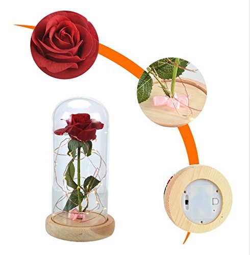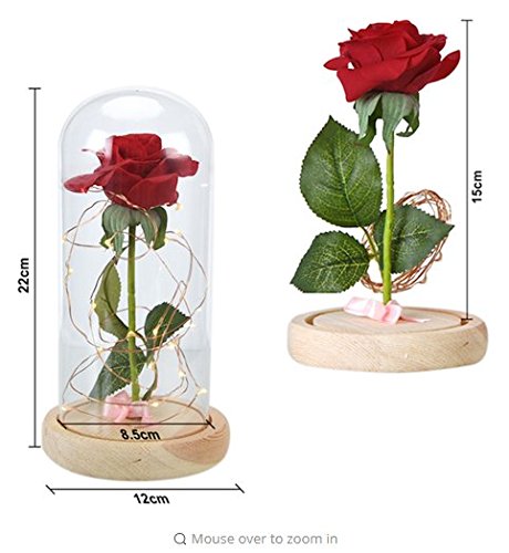 BRIGHT GLASS DOOM: There is a real glass dome covering the rose. Height 10.2", Diameter 6.2", with Reliable Package