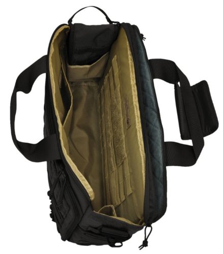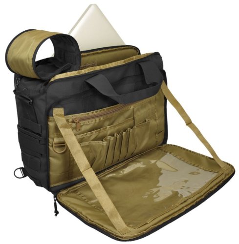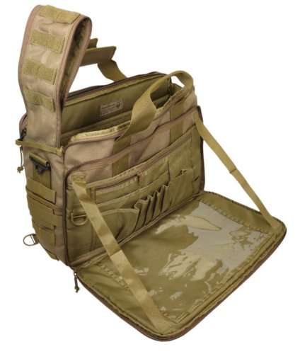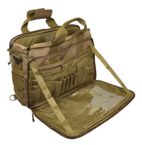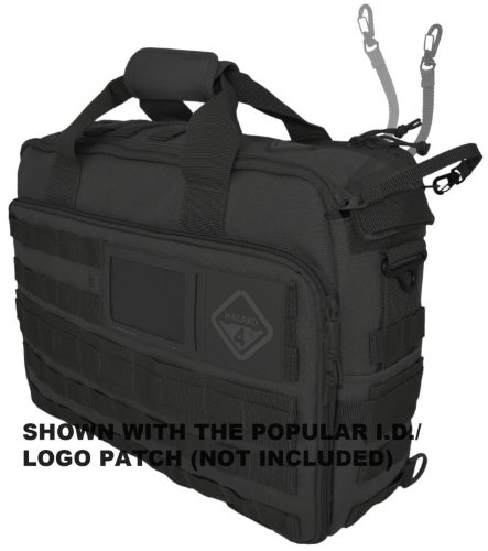 -. Binding : Misc. -. Brand : HAZARD 4 -. Feature : drop-down organizer w/ map window / exterior and interior MOLLE / dual-zippered top-opening zip for full or partial bag opening w/ side storage / padded back-carrier pocket fits up to 15" laptops; side-handles and metal d-rings for strap / OVERALL EXT. SIZE: 17.75" L x 12.6" W x 5.5" D (45 x 32 x 14 cm); MAIN COMPARTMENT SIZE: 16.9" L x 12.2" W x 4.7" D (43 x 31 x 12 cm) -. Label : Civilian Lab LLC -. Manufacturer : Civilian Lab LLC -. ProductGroup : Sports -. ProductTypeName : SPORTING_GOODS -. Publisher : Civilian Lab LLC -. Studio : Civilian Lab LLC -. Title : Ditch(TM) Laptop Soft-Briefcase/Go-Bag w/ MOLLE by Hazard 4(R)