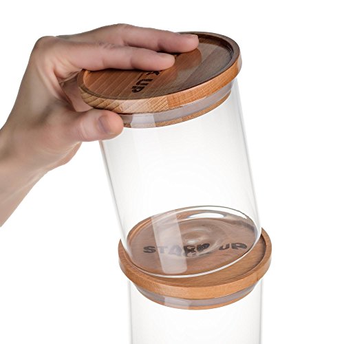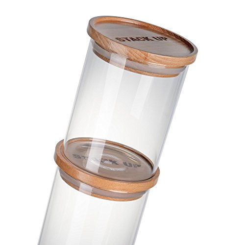 STACK UP Transparent Food Storage Canister - Safe Clear Borosilicate Glass Jar with Wooden Lid - Perfect Container for Kitchen Organization - Keeps Food Dry and Fresh - Cylinder, Capacity 27.1 fl oz.