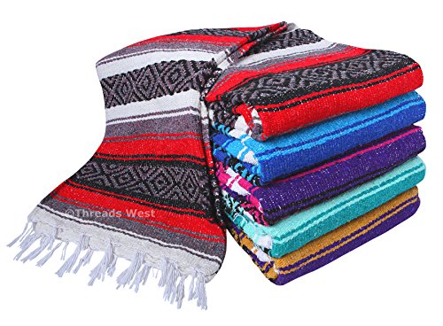 Threads West Premium Heavyweight Mexican Falsa Blanket, Serape Stripe Yoga Blanket