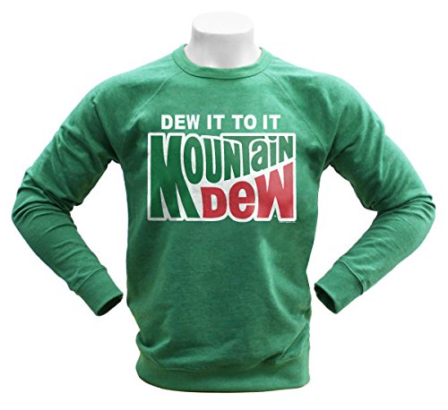 Binding : Apparel Product Description Dew it to it! This classic Mountain Dew design is featured on a kelly green heather french terry crew neck sweatshirt. French terry fabric is heavier than a t-shirt but lighter than most sweatshirts and delivers comfort, warmth, and durability while maintaining a nice drape on the body. 0