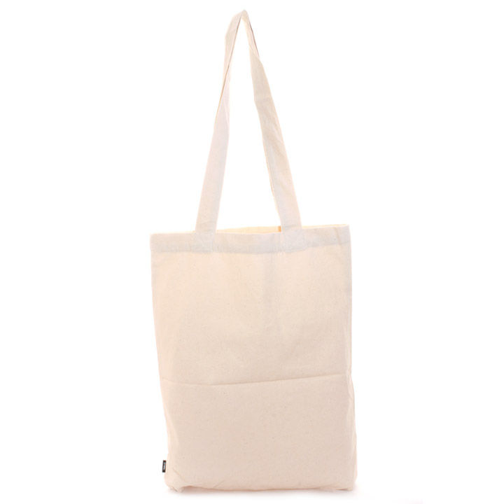 生成りのようなナチュラルなカラーリングにロゴがマッチしたトートバッグ。大き目のサイズで持ち手が長く持ちやすく、肩掛けでも窮屈することなく荷物の出し入れができます◎さりげなく施されている ピスネームがアクセント。コンパクトにたためるのでカバンに収納してもかさばらずバッグインバッグとしても大活躍します。