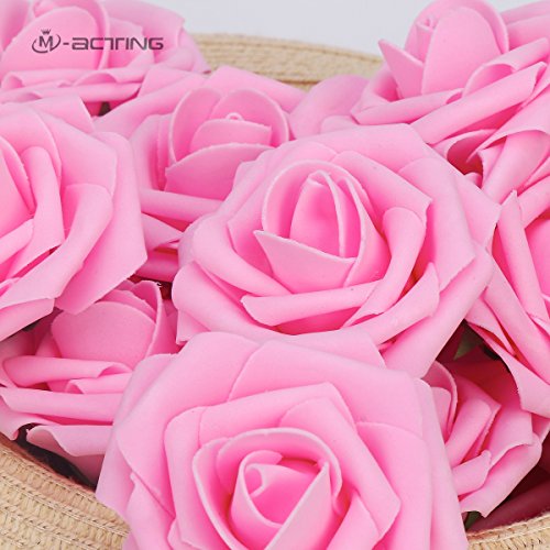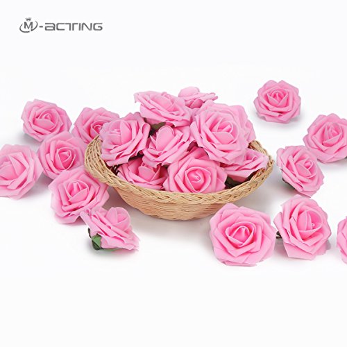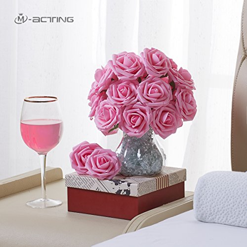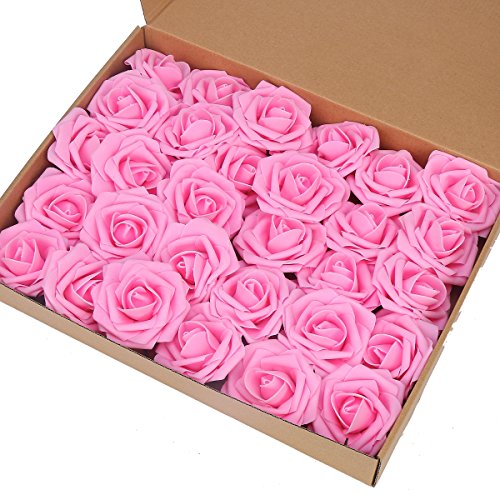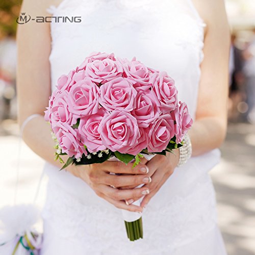 Artificial Flower Rose,Marry Acting 30pcs Real Touch Artificial Roses for DIY Bouquets Wedding Party Baby Shower Home Decor (Pink)