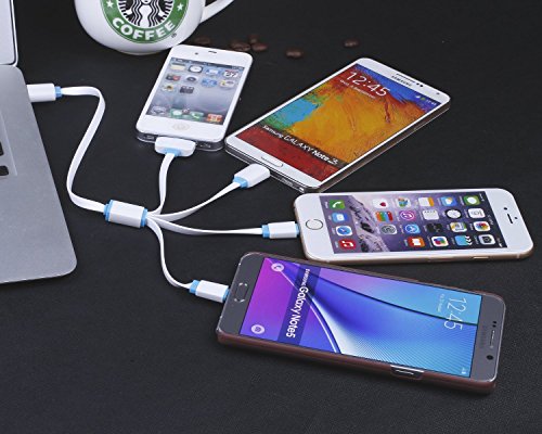 Multi Charging Cable, Gempion 3ft High Quality 4 in 1 USB Charger Connector for iPhone 6s, 6 Plus, 5S, Micro USB for Samsung Galaxy S6 S5 S4 Note 3 Power Bank Portable Charger and More (White & Blue)