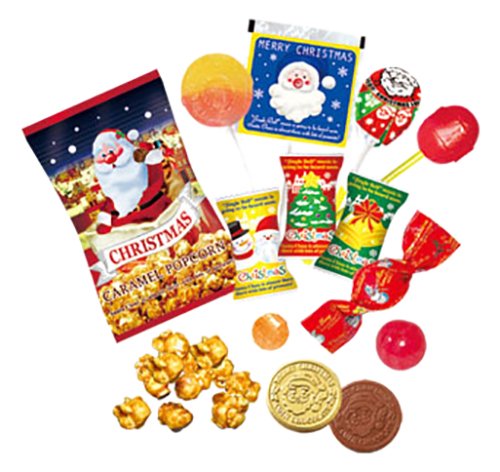 原材料:<ラウンドロリーポップ>砂糖、ブドウ糖液糖(小麦を含む)/酸味料、香料、着色料(V.B2、アントシアニン)<ポップコーン>コーンシロップ、とうもろこし(遺伝子組換えでない)、砂糖、糖蜜、植物油、食塩/乳化剤(大豆由来)、膨張剤、香料<ロリーポップ>砂糖、ブドウ糖液糖(小麦を含む)/酸味料、香料、着色料(アントシアニン、銅葉緑素、パプリカ色素、V.B2)<ストロベリーキャンデー>砂糖、水飴、りんご果汁/酸味料、着色料(アントシアニン)、香料、増粘剤(アラビアガム)、光沢剤<オレンジキャンデー>砂糖、水飴、りんご果汁/酸味料、香料、着色料(アナトー)<チョコレート>砂糖、ココアバター、全粉乳、カカオマス、ホエイパウダー/乳化剤(大豆由来)、香料