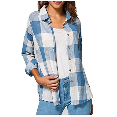 NOTE: Please compare the detail sizes with yours before you buy!!! Use similar clothing to compare with the size. Product information: Season: Spring;summer; Autumn Gender: Women Occasion: Casual Material: Cotton Blend Decoration: Pocket Clothing Length: Regular Pattern Type: Plaid Style: Fashion,Causal Weight: 166~206g(S-XXL) Color: Blue,Navy What you get: 1*Women Shirt Size Details (1 "= 2.54cm): Size:S-------Bust:102cm/40.1"-----Sleeve:36cm/14.1"------Length:71cm/27.9" Size:M------Bust:106cm/41.7"-----Sleeve:37cm/14.5"------Length:72cm/28.3" Size:L-------Bust:110cm/43.3"-----Sleeve:38cm/14.9"-----Length:73cm/28.7" Size:XL-----Bust:114cm/44.8"-----Sleeve:39cm/15.3"-----Sleeve:74cm/29.1" Size:XXL---Bust:118cm/46.4"----Sleeve:40cm/15.7"------Sleeve:75cm/29.5"-----Length:63cm/24.8" Note: -Please allow 1-2cm measuring deviation due to manual measurement. Please check the size Chart before order. If you are not sure the size, please send message to us. 0