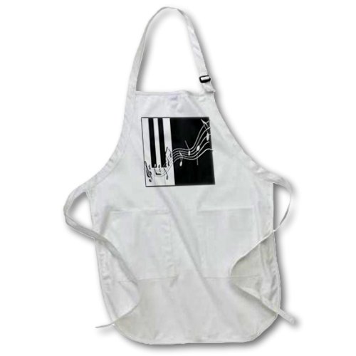 3dRose apr_24372_2 Silver Music Notes on Piano Keys Medium Length Apron with Pouch Pockets 22 by 24"