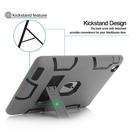 Topsky High Impact Resistant Hybrid Three Layer Armor Defender Full Body Protective Case for iPad 2/iPad 3/iPad 4 Bundle with Stylus Pen, Screen Protector & Cleaning Cloth - Grey Black