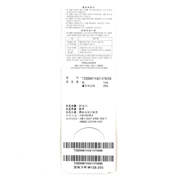 * Q/A 및 상품, 재고문의, 기타 자세한 안내는 매장으로 연락 부탁드립니다.