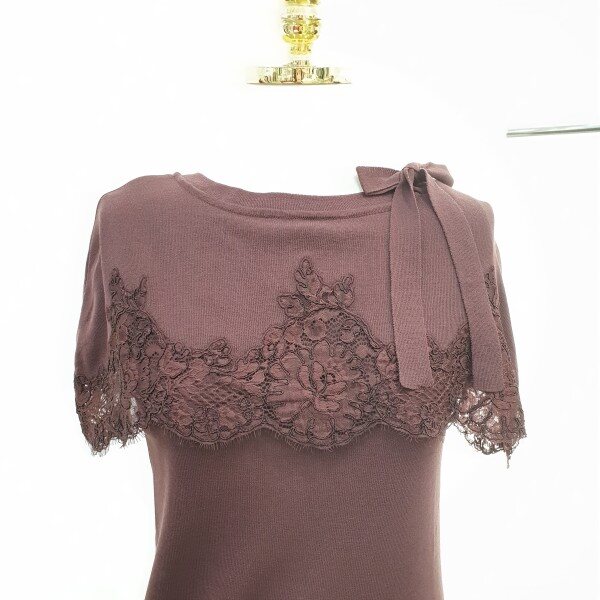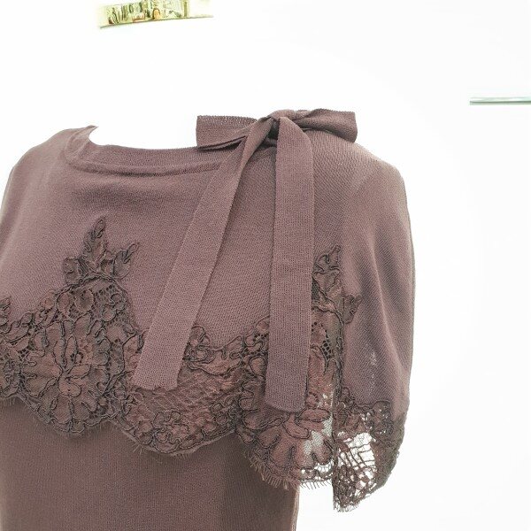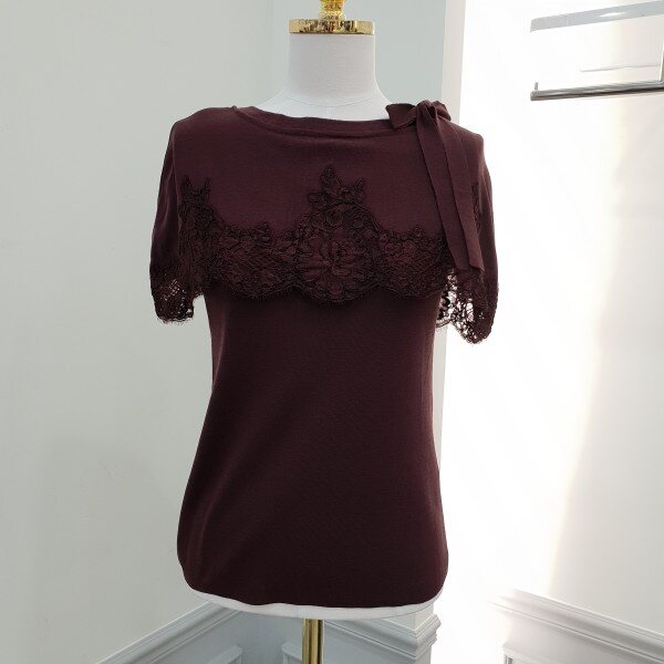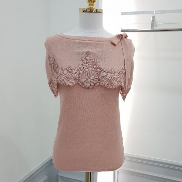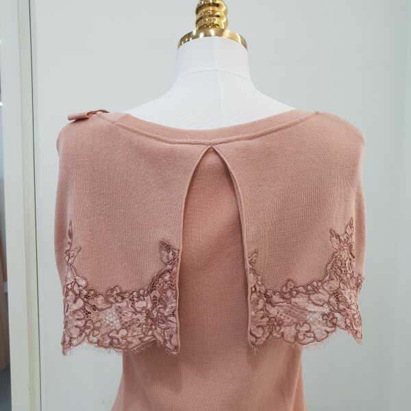 슬림라인이나 신축성은좋습니당~어깨부분케이프느낌으로 레이스처리 ,리본포인트