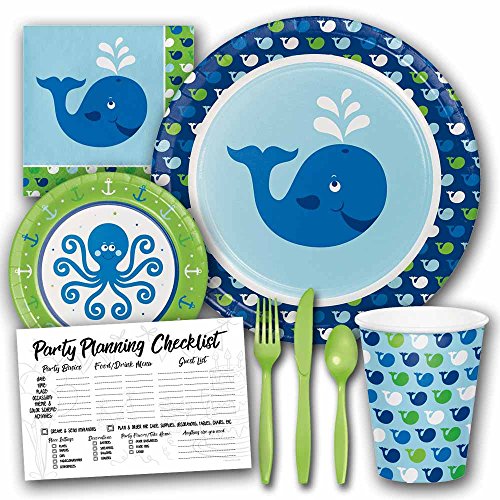 -. Title : Ocean Preppy Whale Birthday Party Supplies Set for Boys - Serves 8 Guests