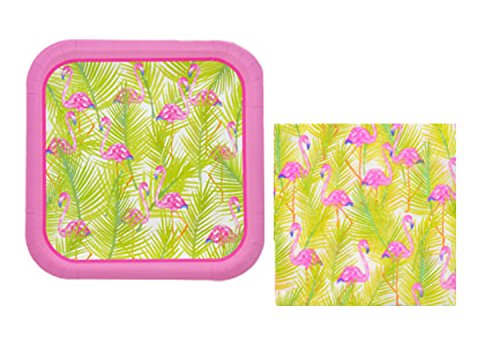 Luau Party Kit - Plates & Napkins -Serves 14 Guest - 34 Pieces ( Pink Flamingo Theme)