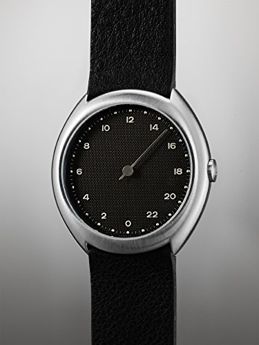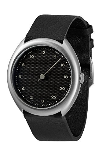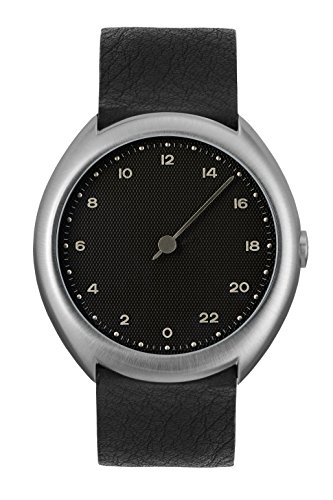 slow O 05 - Swiss Made one-hand 24 hour watch - Silver with black leather band